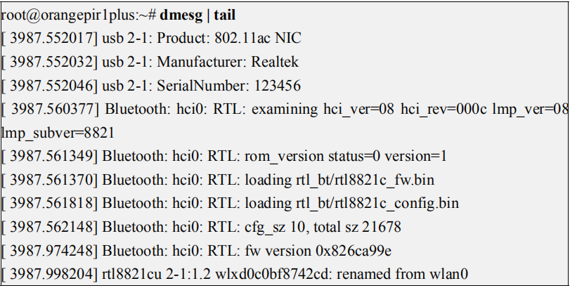 3) 通过 dmesg 命令可以看到 RTL8821CU 模块的加载信息