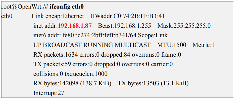3) 查看 IP 地址的命令如下