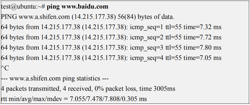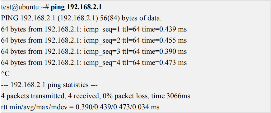 4) 测试网络连通性的命令如下
