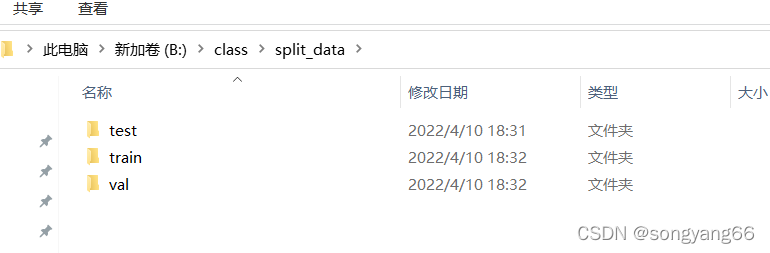from shutil import copy2def data_set_split(initial_data_folder, target_data_folder, train_scale=0.8, val_scale=0.2, test_scale=0.0):'''读取源数据文件夹,生成划分好的文件夹,分为trian、val、test三个文件夹进行:param initial_data_folder: 源文件夹 E:/biye/gogogo/note_book/torch_note/data/utils_test/data_split/initial_data:param target_data_folder: 目标文件夹 E:/biye/gogogo/note_book/torch_note/data/utils_test/data_split/target_data:param train_scale: 训练集比例:param val_scale: 验证集比例:param test_scale: 测试集比例:return:'''print("开始数据集划分")class_names = os.listdir(initial_data_folder)#用于返回initial_data_folder文件夹包含的图片文件的名字的列表# 在目标目录下创建文件夹split_names = ['train', 'val', 'test']for split_name in split_names:split_path = os.path.join(target_data_folder, split_name)if os.path.isdir(split_path): #os.path.isdir()函数判断某一路径是否为目录 passelse:os.mkdir(split_path) #os.mkdir()函数创建目录(创建一级目录),其参数path 为要创建目录的路径 拓展:使用os.rmdir()函数删除目录。# 然后在split_path的目录下创建类别文件夹,生成Fruit-anthrax等五个文件夹for class_name in class_names:class_split_path = os.path.join(split_path, class_name)if os.path.isdir(class_split_path):passelse:os.mkdir(class_split_path)# 按照比例划分数据集,并进行数据图片的复制# 首先进行分类遍历for class_name in class_names:current_class_data_path = os.path.join(initial_data_folder, class_name)current_all_data = os.listdir(current_class_data_path)#用于返回current_class_data_path文件夹包含的图片文件的名字的列表current_data_length = len(current_all_data)current_data_index_list = list(range(current_data_length))random.shuffle(current_data_index_list)train_folder = os.path.join(os.path.join(target_data_folder, 'train'), class_name)val_folder = os.path.join(os.path.join(target_data_folder, 'val'), class_name)test_folder = os.path.join(os.path.join(target_data_folder, 'test'), class_name)train_stop_flag = current_data_length * train_scaleval_stop_flag = current_data_length * (train_scale + val_scale)current_idx = 0train_num = 0val_num = 0test_num = 0for i in current_data_index_list:initial_img_path = os.path.join(current_class_data_path, current_all_data[i])if current_idx <= train_stop_flag:copy2(initial_img_path, train_folder)train_num = train_num + 1elif (current_idx > train_stop_flag) and (current_idx <= val_stop_flag):copy2(initial_img_path, val_folder)val_num = val_num + 1else:copy2(initial_img_path, test_folder)test_num = test_num + 1current_idx = current_idx + 1print("*********************************{}*************************************".format(class_name))print("{}类按照{}:{}:{}的比例划分完成,一共{}张图片".format(class_name, train_scale, val_scale, test_scale, current_data_length))print("训练集{}:{}张".format(train_folder, train_num))print("验证集{}:{}张".format(val_folder, val_num))print("测试集{}:{}张".format(test_folder, test_num))if __name__ == '__main__':initial_data_folder = "training_data" # 原始数据集路径target_data_folder = "split_data" # 目标存放的路径data_set_split(initial_data_folder, target_data_folder)