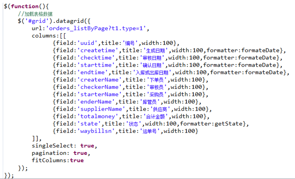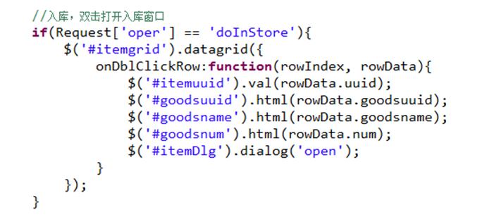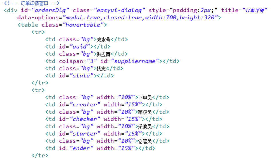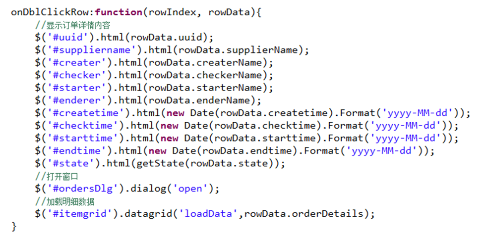 给grid表格添加双击事件,弹出窗口后加载订单信息,把订单详细信息显示到table,同时加载订单里的商品列表: