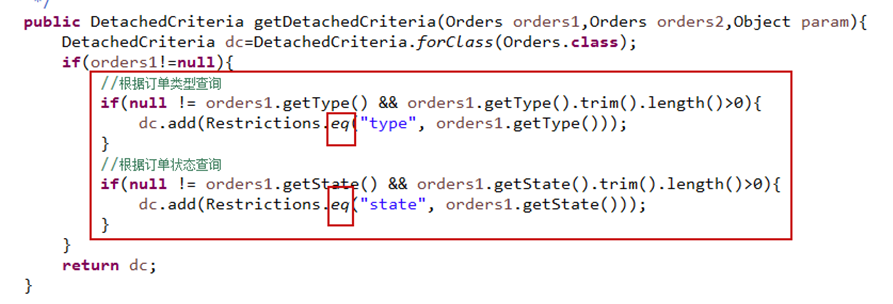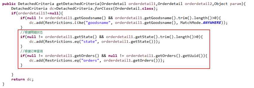 (3)修改OrdersDao的getDetachedCriteria方法: