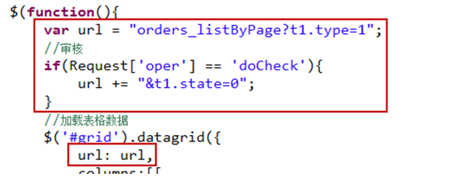 (1)修改orders.html,添加request.js。通过url传参oper=doCheck来进入采购订单审核的页面