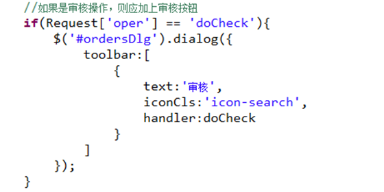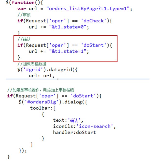 (1)修改orders.js,添加对oper=doStart的判断,动态添加工具栏按钮,具体跟oper的操作类型有关