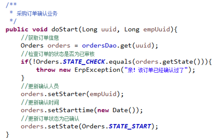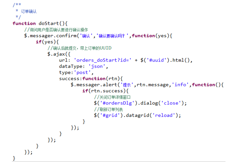 (2)订单确认跟订单审核有很多相同的地主,我们可把原有的doCheck复制过来修改成doStart方法: