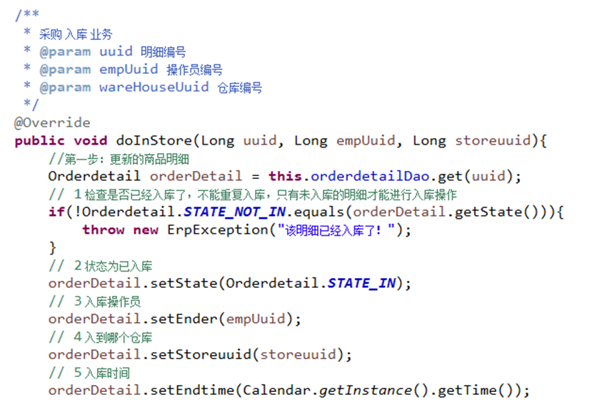 IOrderdetailBiz添加doInStore方法,并在OrderdetailBiz中实现
