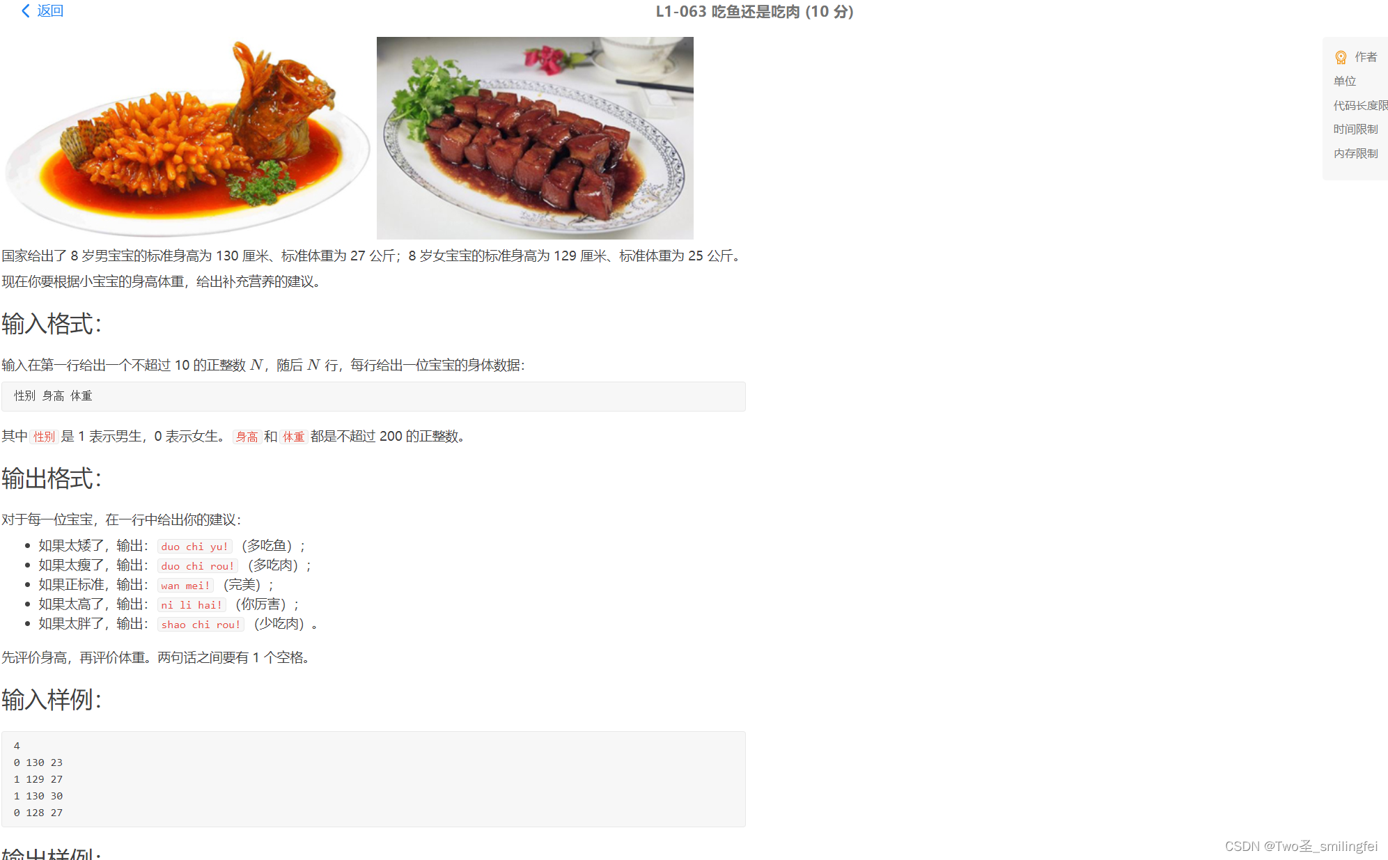 本文主要是介绍L1-063 吃鱼还是吃肉(10分),希望对大家解决编程问题提供一定的参考价值,需要的开发者们随着小编来一起学习吧!