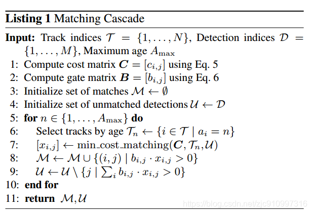 级联匹配的核心思想就是由小到大对消失时间相同的轨迹进行匹配,这样首先保证了对最近出现的目标赋予最大的优先权,也解决了上面所述的问题。
