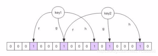 它实际上是一个很长的二进制向量和一系列随机映射函数。把一个目标元素通过多个hash函数的计算,将多个随机计算出的结果映射到二进制向量的位中,依次来间接标记一个元素是否存在于一个集合中。