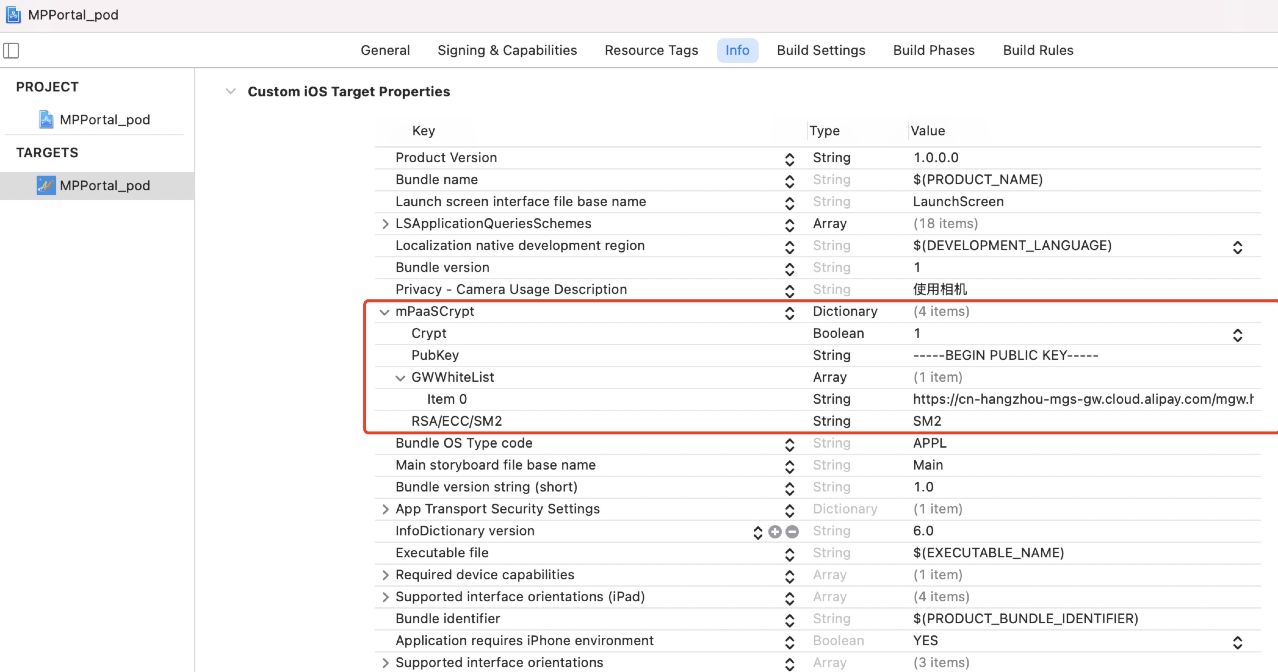 2.info.plist xcode工程配置文件中的mPaaSCrypt