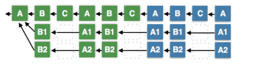 为了帮助解释这个算法,我想假设3个块生产者A,B和C。因为共识(的达成)需要2/3+1多数来解决所有情况,这个简化的模型将假设生产者C是打破僵局的那个人。在现实世界中,将有21个或更多的块生产者。像工作量证明一样,一般规则是最长链胜出。任何时候当一个诚实的对等节点看到一个有效的更长链,它都会从当前分叉切换到更长的这条链。