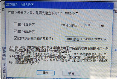 - 然后出现下图,勾上第一个“建立ESP分区”,把100改成500,然后点确定。