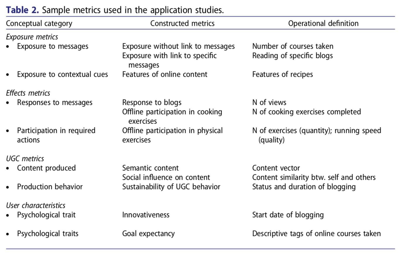 exposure matrix: 核心在于5W(who - what activity - when - where - why) 其中包含了人口特征、时空变量、心理因素、活动类型(活跃创作活动或不明显的围观活动等)。