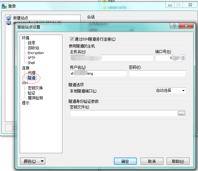 首先设置跳板机配置,打开高级站点设置---选择隧道