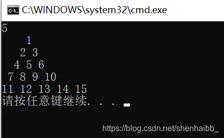 int main() {int n;cin >> n;if (n < 15) {Triangle(n);//另外写了一个专门执行功能的函数}return 0;