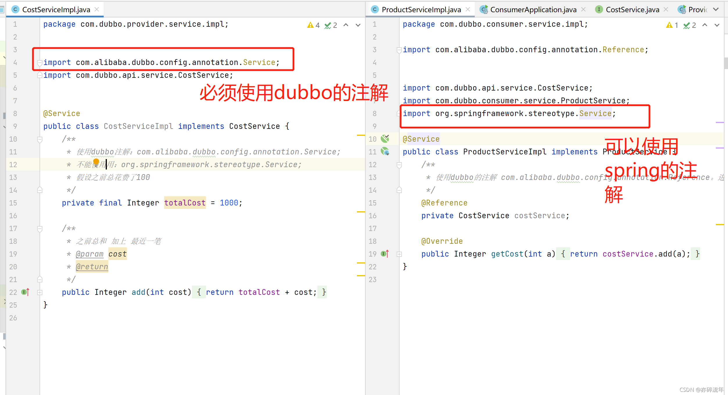 com.alibaba.dubbo.config.annotation.Service:用于标注对外暴露的dubbo接口实现类。