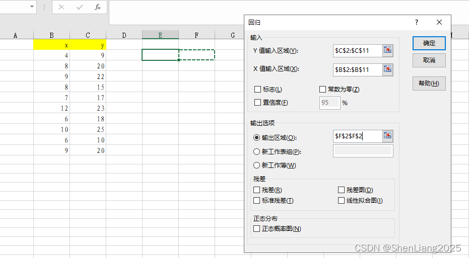 Step4:选择X区域、Y区域、输出区域后点 确定