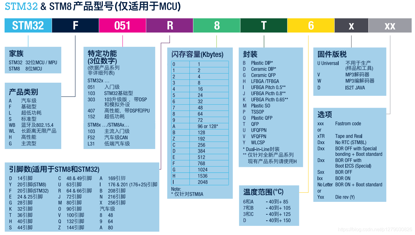 本文主要是介绍STM32、STM8产品型号区分,型号名含义,希望对大家解决编程问题提供一定的参考价值,需要的开发者们随着小编来一起学习吧!