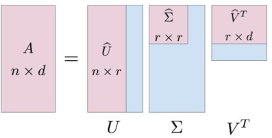 本质上,奇异值分解是一种矩阵因子技术,其输入为大型矩阵A,输出为小矩阵U和V。其中,Σ为对角矩阵用于吃调整数据的尺度。对于U矩阵,其实质表征的是用户主成分,英文专有名词对应user-embedding矩阵;V矩阵,其实质表征的是产品主成分,英文专有名词对应item-embedding矩阵。