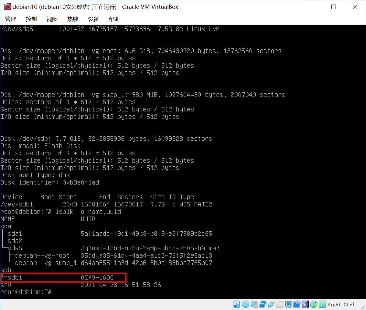 这篇关于在windows下使用virtualbox的debian10虚拟机运行lsblk命令查看u盘的uuid的文章就介绍到这儿,希望我们推荐的文章对编程师们有所帮助!
