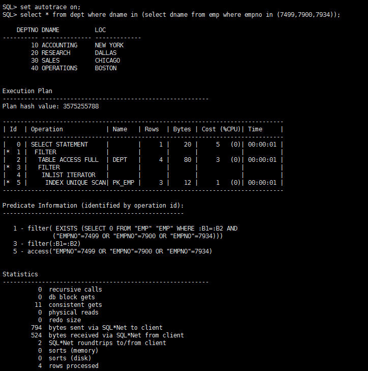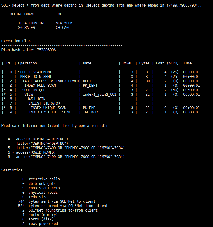 返回了dept表的全部记录,一并贴上执行计划