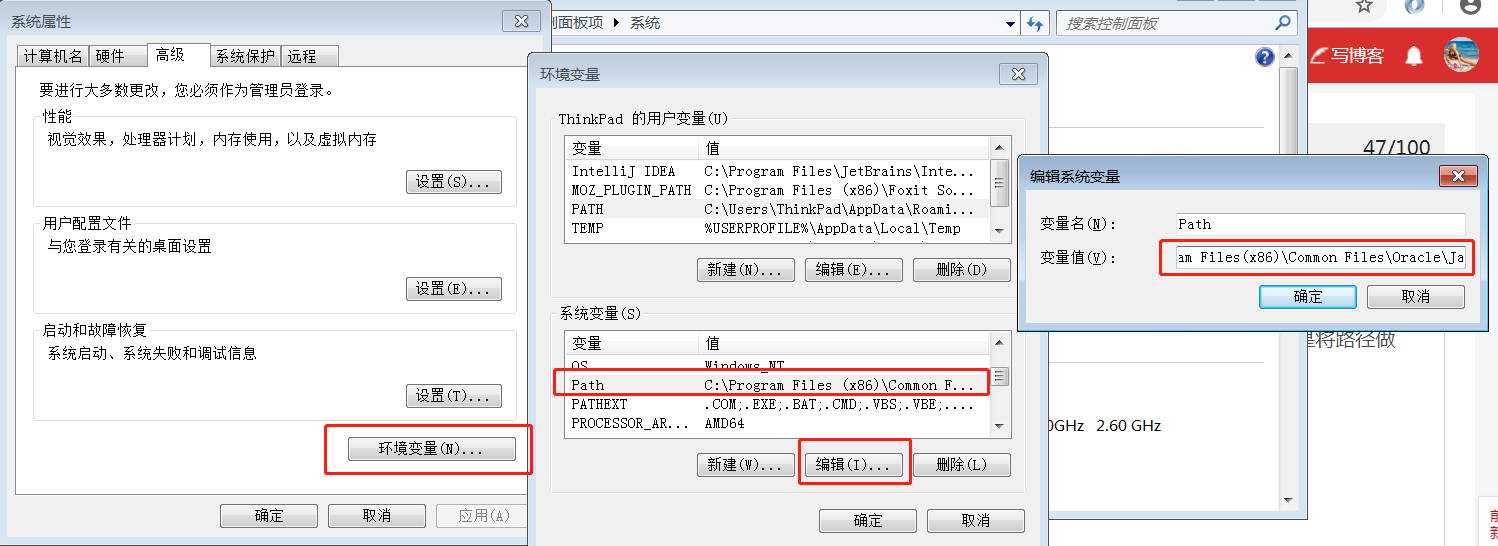我的电脑--属性--高级系统设置--环境变量--系统变量--Path--编辑--如图: