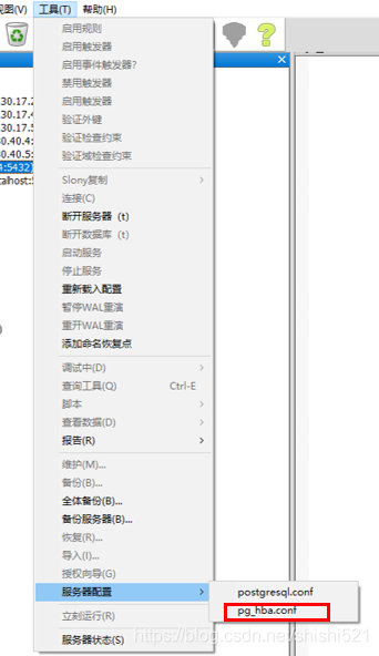 具体步骤如下:打开pg数据库,工具,选择配置文件