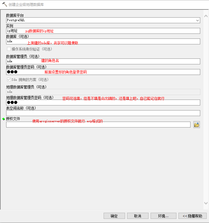 2)在pg里建立角色,sde角色要在pg里建立好密码。