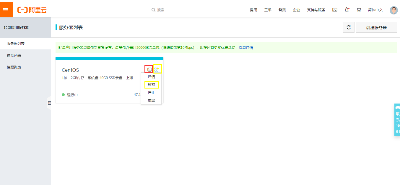 (1)点击黄色按钮后点击改密,(这里博主已经改过密码)