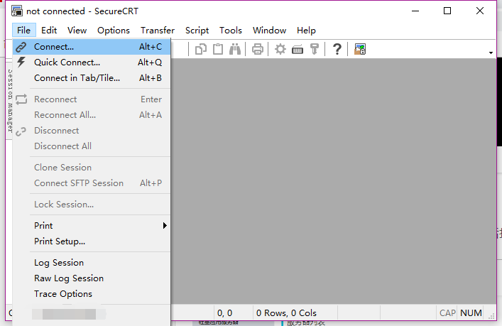 (2)打开软件secureCRT,点击file->Connect