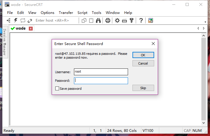 (9)输入服务器密码,就是你在阿里云控制台中改密的密码,点击ok即可