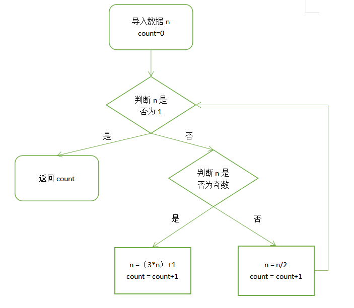 def jiaogu(n): count = 0while n != 1:if n % 2 == 0:n = n / 2count += 1else:n = n * 3 + 1count += 1print(count)n = int(input('请输入一个正整数:'))