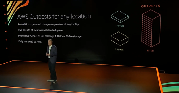 基于这样的考量,AWS在早期推出过虚拟私有云服务Amazon VPC和网络服务AWS Direct Connect,在云与本地数据中心之间建立了一座“桥梁”。随后,AWS与VMware合作推出了VMware Cloud on AWS,让客户可以在AWS使用同样的VMware软件和工具。2018年,AWS重磅发布了AWS Outposts,它采用与AWS云数据中心一样的服务器硬件,搭载AWS服务并由AWS全托管,使用与AWS云上相同的API、控制面板、工具、功能等,这样就不但解决了客户本地设备和云计算之间的延时的问题,也不用担心运维,并且使用一致性的平台技术,使得企业开发的门槛变得更低。