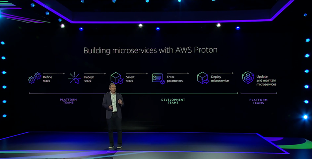 而AWS Proton是业界少有的从组织管理维度、标准接口层面定义的视角出发,打造面向容器化应用部署和管理平台型产品,通过标准化的服务模板,企业就能显著降低管理微服务的复杂性,且开发人员也可以更简单地使用容器和无服务器技术部署代码。