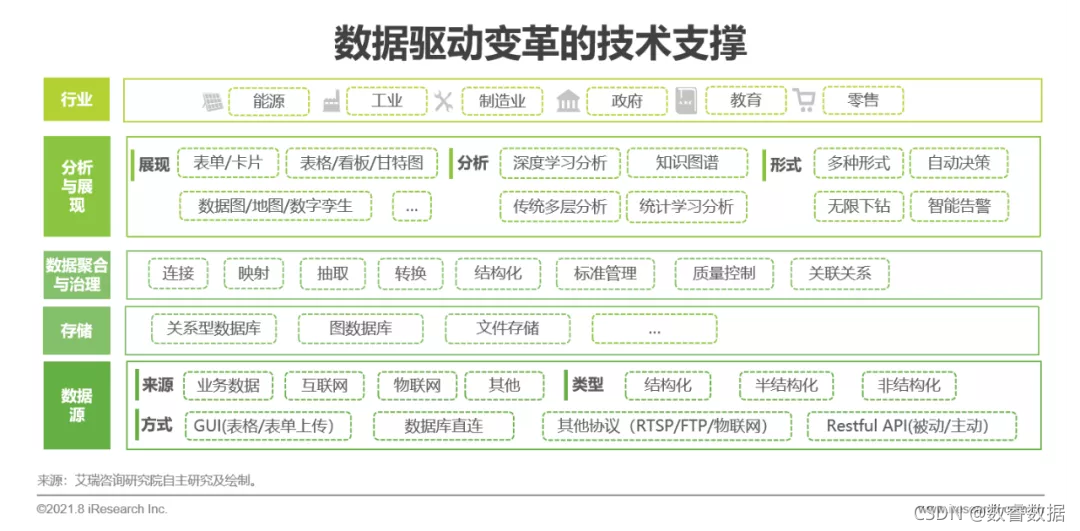大数据时代,数据已然上升为企业整体发展和转型的新动能,能够辅助企业更好的做出管理上的决策及调整。低/无代码平台除了需要将复杂的代码抽象,也需要将可变的业务抽象成为柔性的元数据,再通过管理与使用,提升系统的灵活性,以及对市场需求响应的速度。所以,从根本上解决数据从哪儿来、数据给谁用、数据怎么用的问题是推动全行业、复杂多变场景、四大领域(数据/分析/管理/运营)极致无码化的关注重点。技术的创新发展为数据挖掘、存储、聚合、治理,上层的分析应用等多环节带来活力,推动无码化进程。