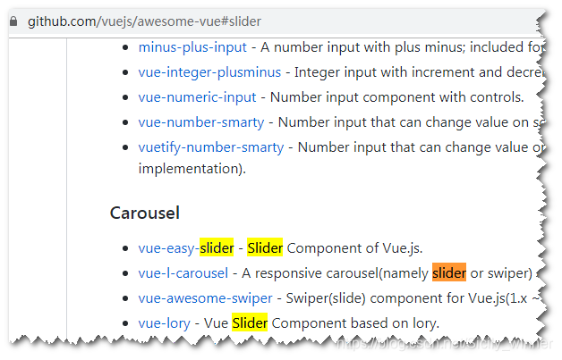 如:本博客中将使用到幻灯片(slider),在下方中随便选一个就行,我选择了vue-easy-slider。