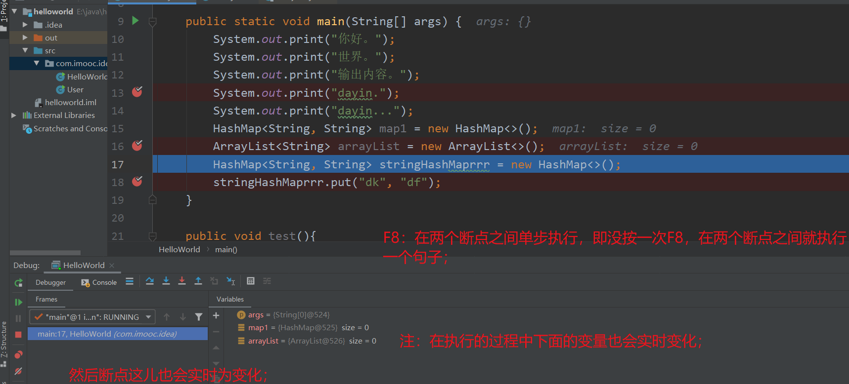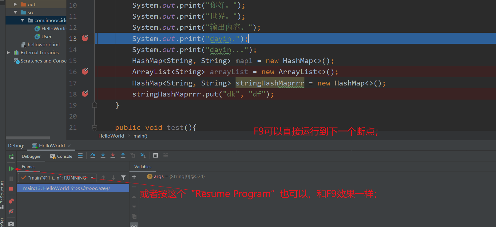 【F8】&【F9】:进入调试模式后,F8可以单步运行;F9直接运行到下一个断点;
