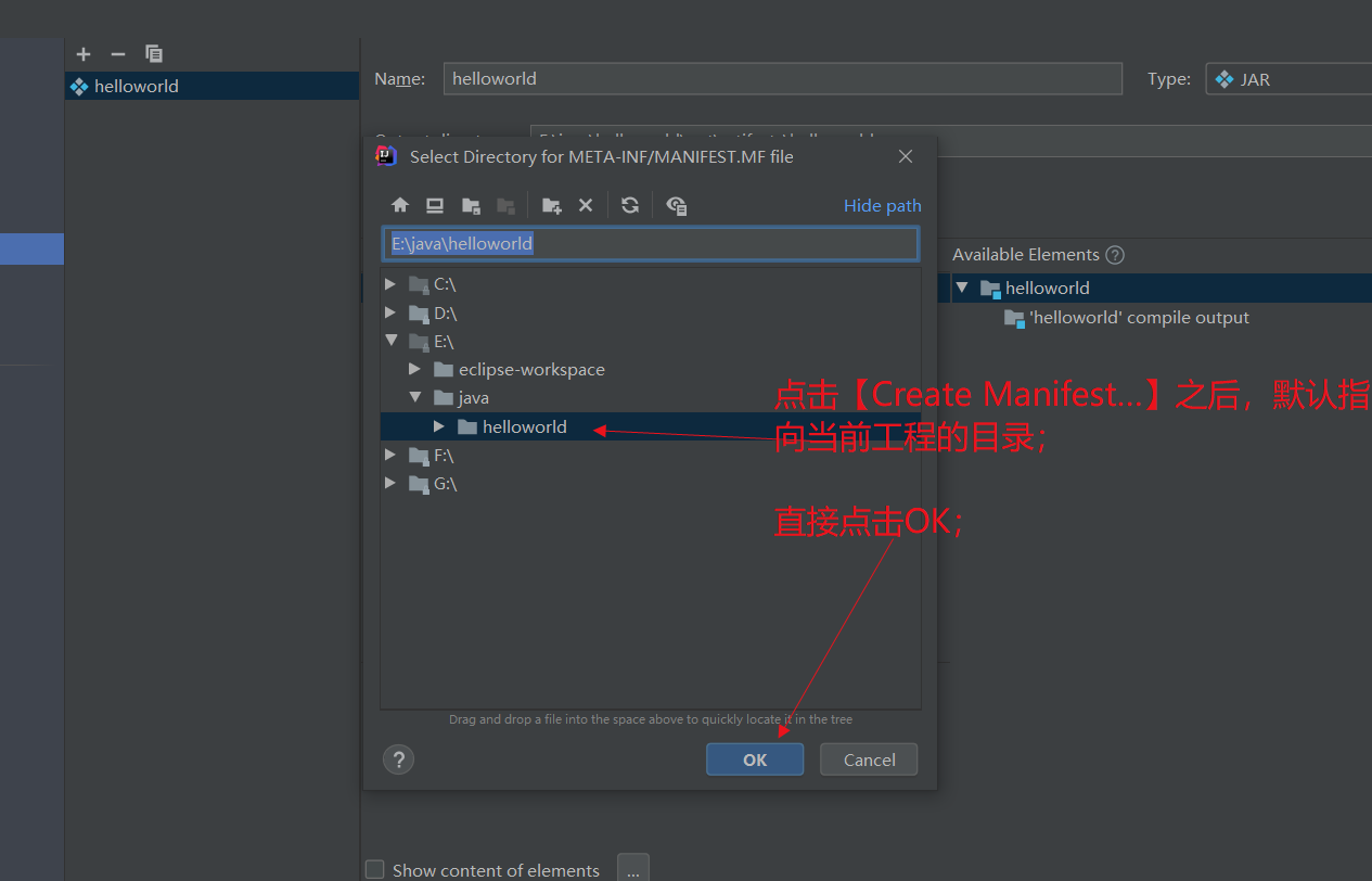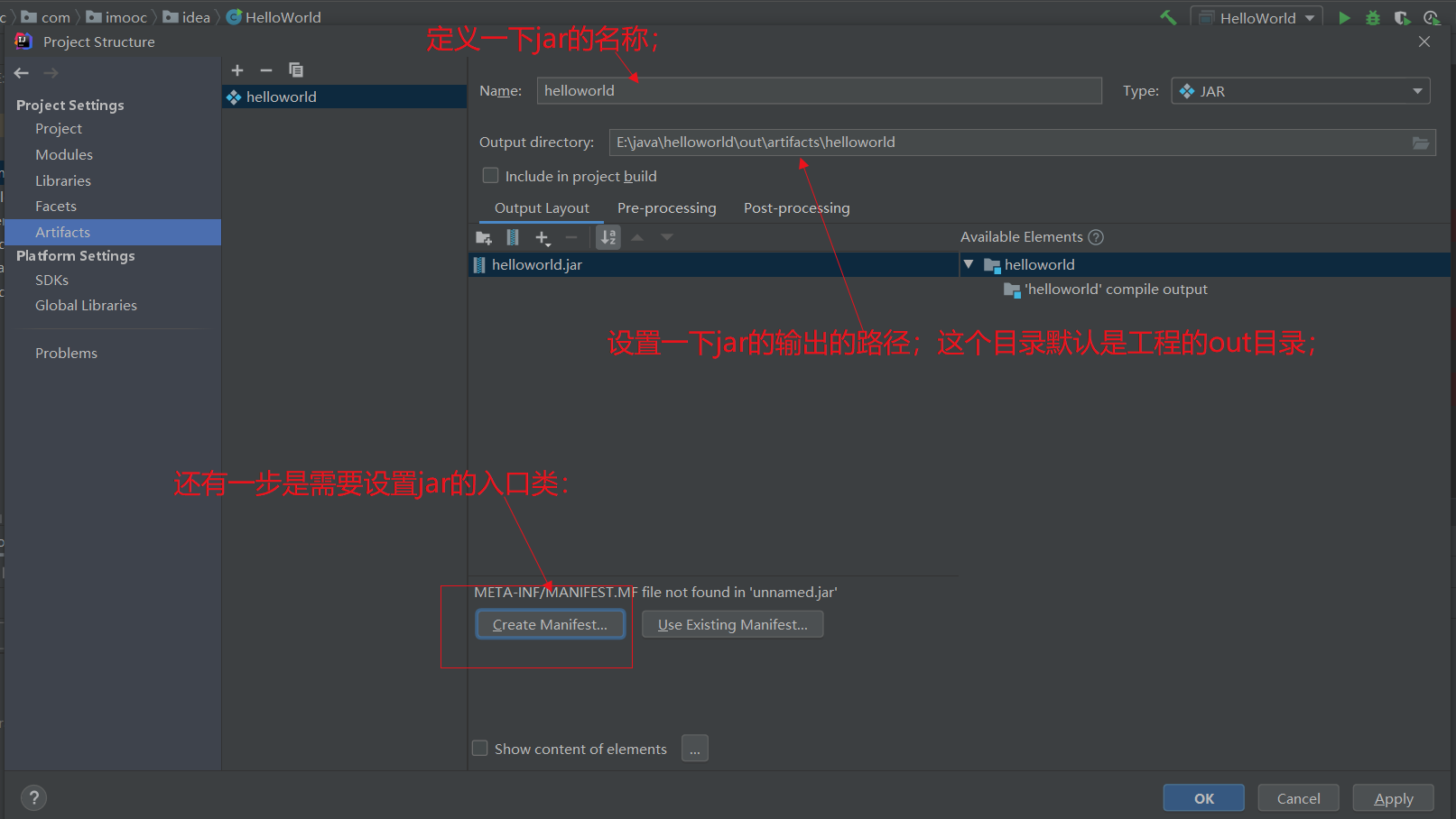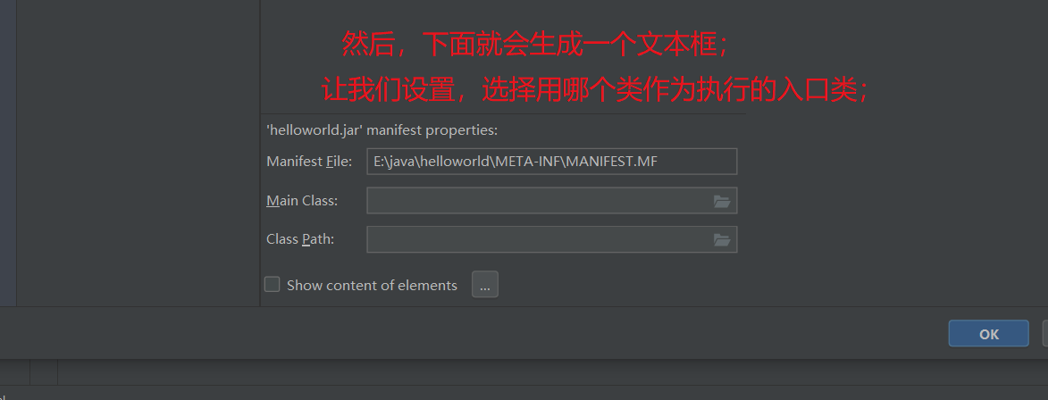 设置jar的入口类:点击【Create Manifest…】:即设置jar的核心的配置文件;在其中可以定义入口类。