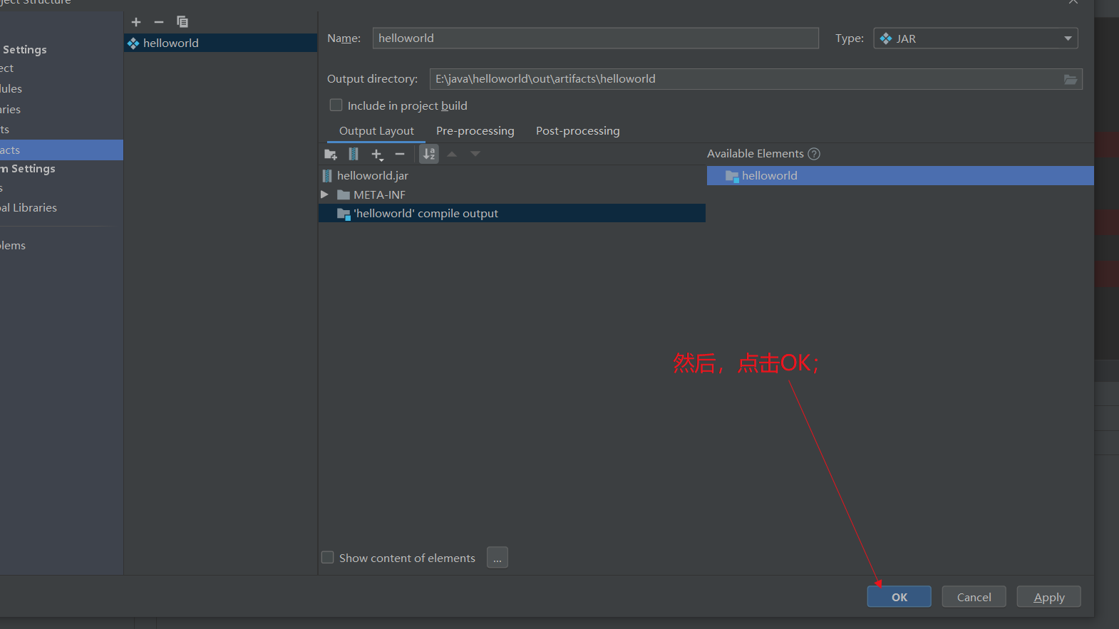 (2)上面设置好了之后,下面就是将jar实际输出了