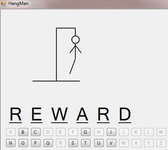 相信不少读者应该见过这个游戏的图形界面版本,就是每猜错一个字母画一笔,直到用完规定次数,小人被“吊死”。