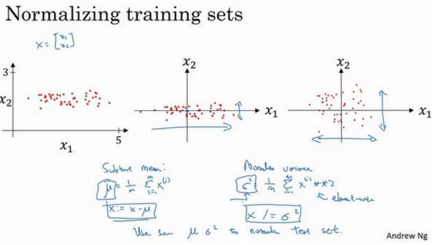 我们希望无论是训练集和测试集都是通过相同的 𝜇和𝜎2 定义的数据转换,这两个是由训 练集得出来的。