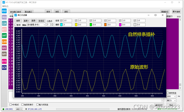 样条插补的主要作用是使得波形更加平滑。比如一帧是128点,步大小是8个像素,我们可以通过插补实现步长为1, 1024点的波形,本质是你的总步长大小不能变,我们这里都是1024,这个不能变,在这个基础上做插补,效果就出来了。