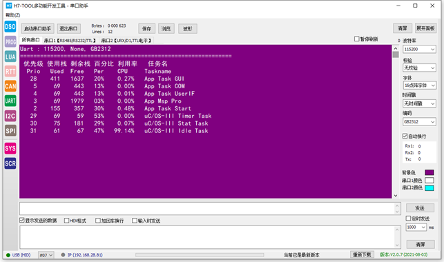 μCOS-III任务调试信息(按K1按键,串口打印):
