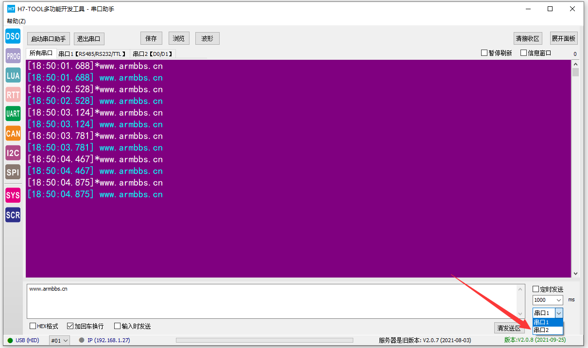 之前的时候串口2的发送功能没有开,这次全部打开,上位机可以选择使用那个串口发送: