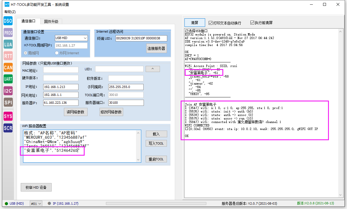 - 关闭WiFi模块内部上电自动重连功能,由STM32程序控制接入AP。