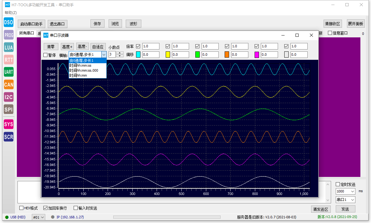 串口波形展示增加横轴设置,可以选择时间坐标,也支持用户设置X轴数值。