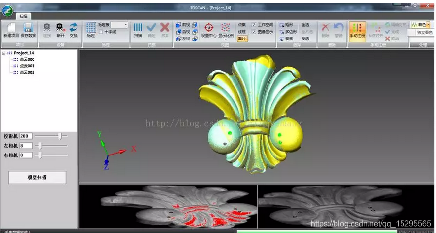 实验过程:采集了两个物体,右边是标准求做精度测试的
