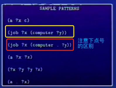 举例: (JOB ?x (?D . ?Y)) --> 如何在系统实现?