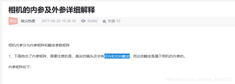 内参我觉得主要就是指畸变参数。畸变又分为径向和切向畸变。畸变应该是比较好理解的对吧。