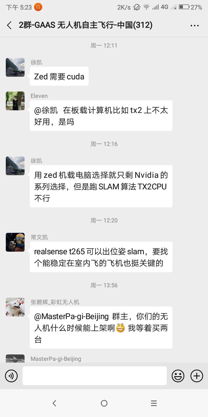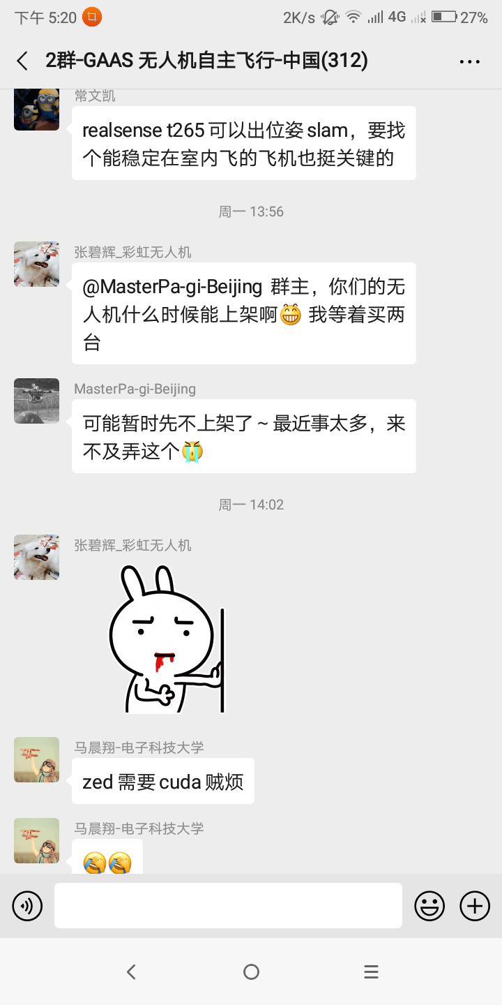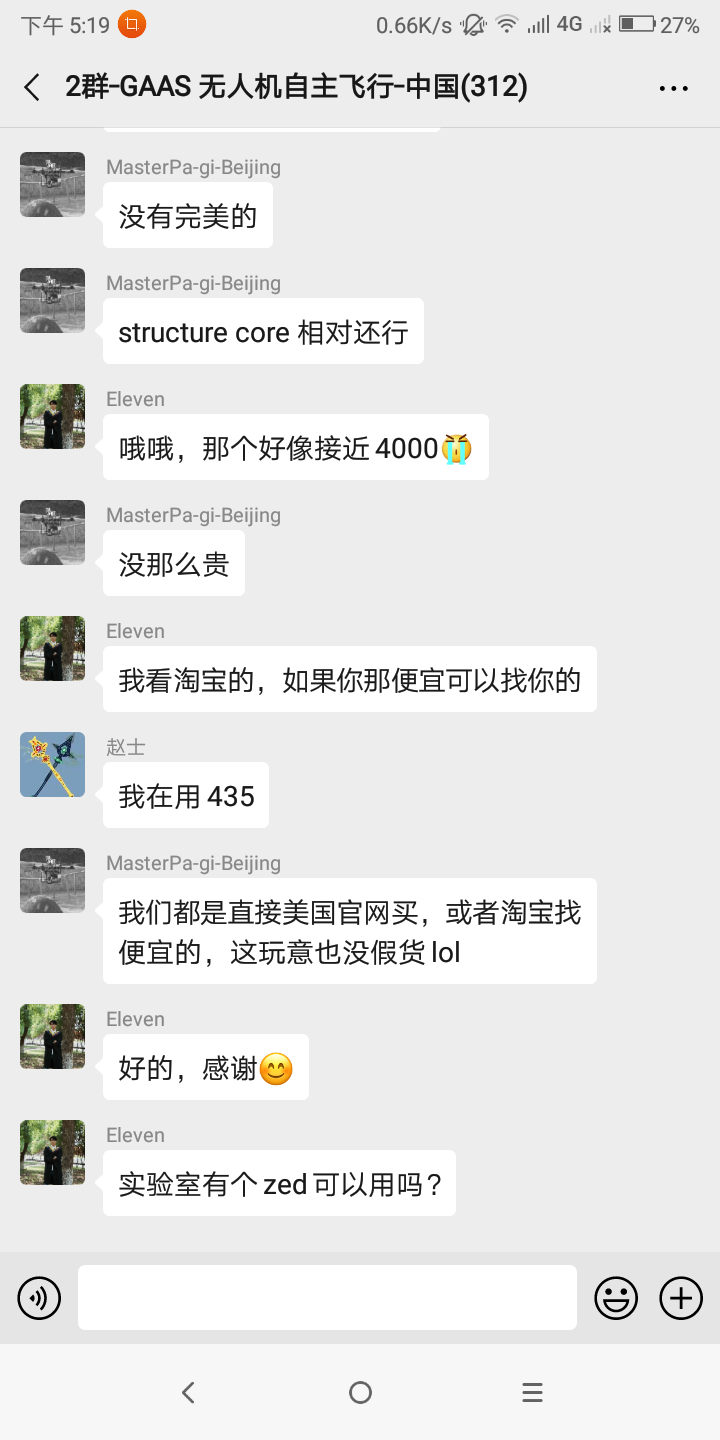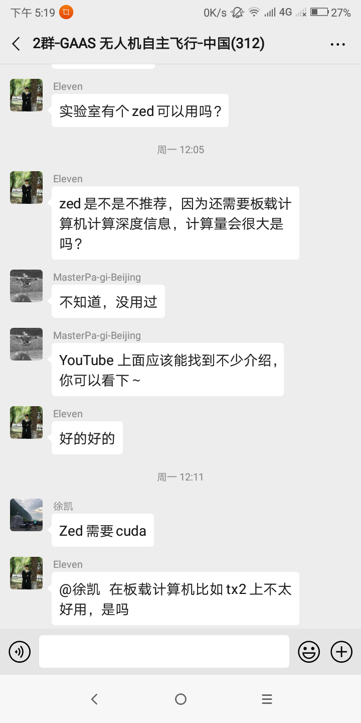 我问了下li吉,他们双目摄像头也是用的小觅,看来高校也在采用这个。更正一下,他们用的ZED,邓祖下面一个弄无人机SLAM的用的小觅标准彩色版。